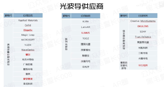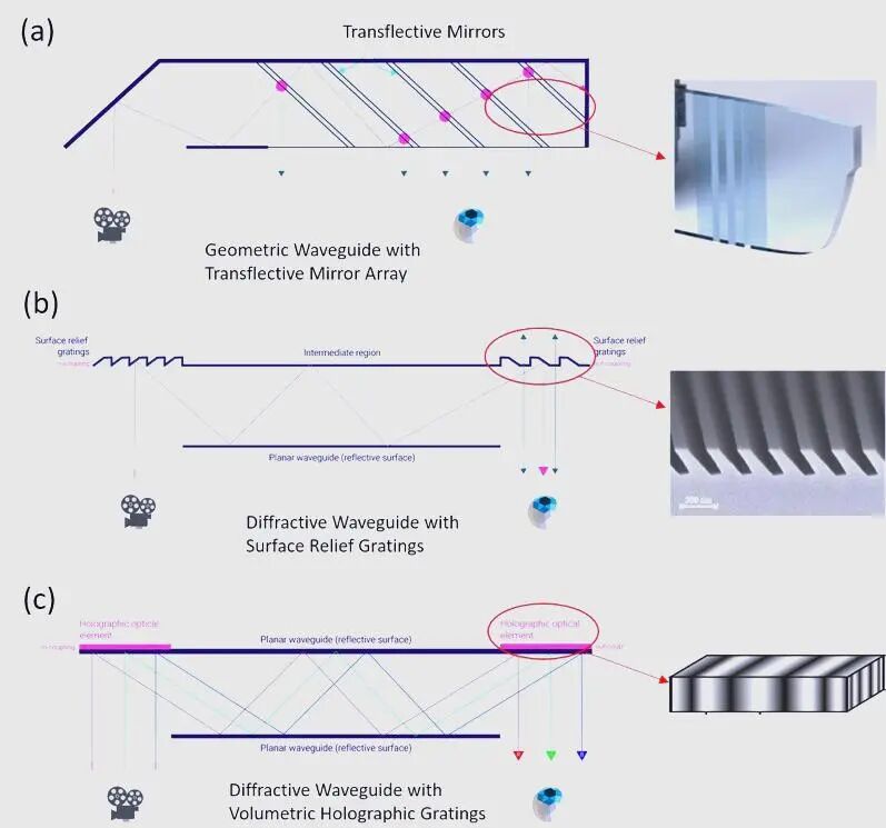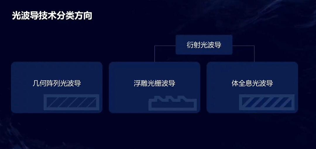 波导是目前最佳的增强现实眼镜方案,分为:几何波导方案、浮雕光栅波导方案和体全息波导方案。