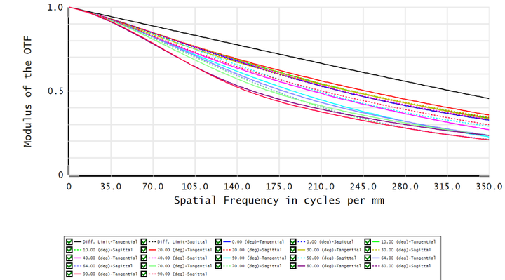 2、 设计中做单透镜分裂,使用多个透镜取代单透镜可增加设计自由度,同时多个透镜分担原有透镜的光焦度,光焦度减小,透镜曲率减小,使得入射光线角度减小,有利高级像差减少;