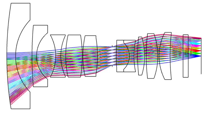 根据上述的演化,鱼眼镜头第1透镜为负光焦度,也决定了鱼眼镜头光学系统必然具有反摄远型物镜结构,即前负后正。如图5反摄远型物镜基本架构。