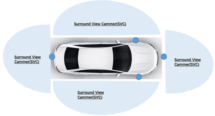 车载视摄像头-鱼眼镜头,分布位置大概如下图:
