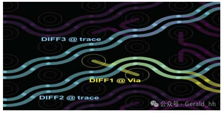 如引言所述,PCIe Gen5通道的损耗预算并未随数据速率翻倍。因此,设计人员应明智地选择布线层,以使整体通道和过孔损耗在损耗预算范围内。对于采用中等损耗材料(Dk – 3.8,Df – 0.015)的20层叠层结构,每个过孔的损耗会因布线层的不同而有0.3dB或更大的差异。从图1可以看出,在16GHz时,Inner1过孔损耗为0.1dB,Inner8过孔损耗约为0.4dB。