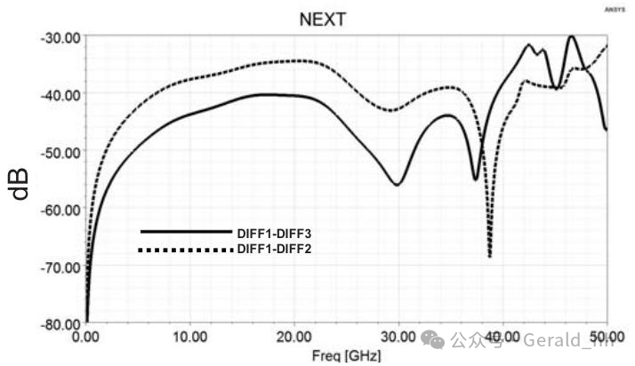 图8. 引脚区域内走线的模拟近端串扰(NEXT)。