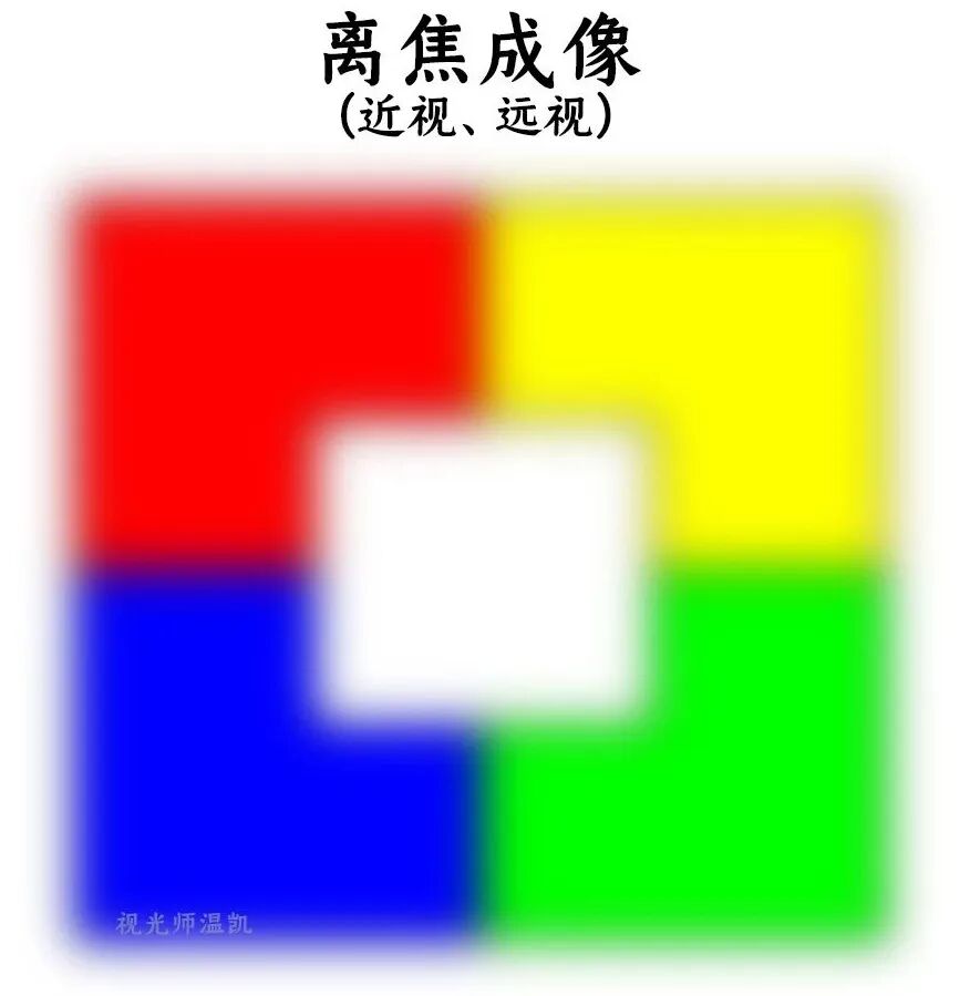 离焦(近视、远视) 离焦,即为离开焦点,当像不能够精准地落在视网膜上时,视网膜感知的图像即为上图所示。