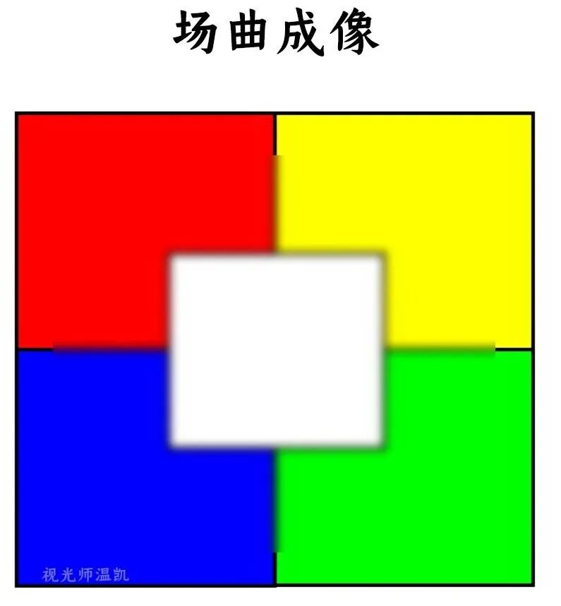 场曲 场曲,直白点理解即为“像面弯曲”,一个平面的物体,经过透镜折射成像后,其像面不再是一个平面,而是一个曲面,此时若用平面去接收该像,则会出现清晰度的差异,即整个平面不能够全都清晰。