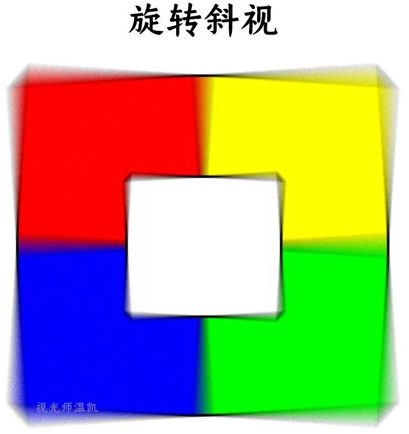 旋转斜视 当人眼产生二维以上角度的眼位偏斜耦合异常时,便会出现此类视觉,如旋转斜、进行性AV、DVD、后退征(三个维度),双眼的图像误差已经不再是单纯的左右、上下平移。
