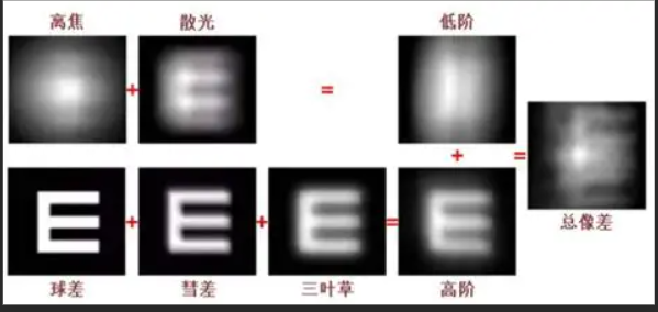 三叶草、四叶草 三叶草与四叶草像差,在光学系统中,是很典型且明显的像差,但在人眼视觉中,很难单独分辨与感知,若眼睛产生该类像差,绝大多数情况下,都是因为角膜不均匀,而不均匀的角膜本就会产生更大的像差,其对视力的影响远远超过三叶草四叶草。