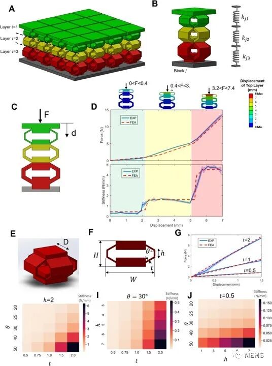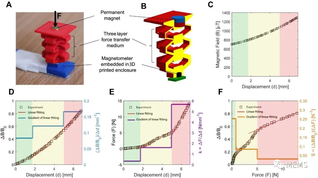 受具有不同刚度的多层的人体皮肤的启发,澳大利亚研究团队在这篇论文中提出了一种异质多层结构和相关的设计框架,以产生一种跨力传感范围的MST传感器。这是通过每层结构刚度可调的多层结构实现的。他们提出的结构可使接触力以不同速率转换为不同层的位移,具体取决于各层的刚度。不同的力-位移速率曲线对应于MST传感器的不同灵敏度。