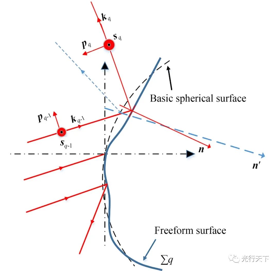 图3. 第q平面上偏振光线折反射示意图