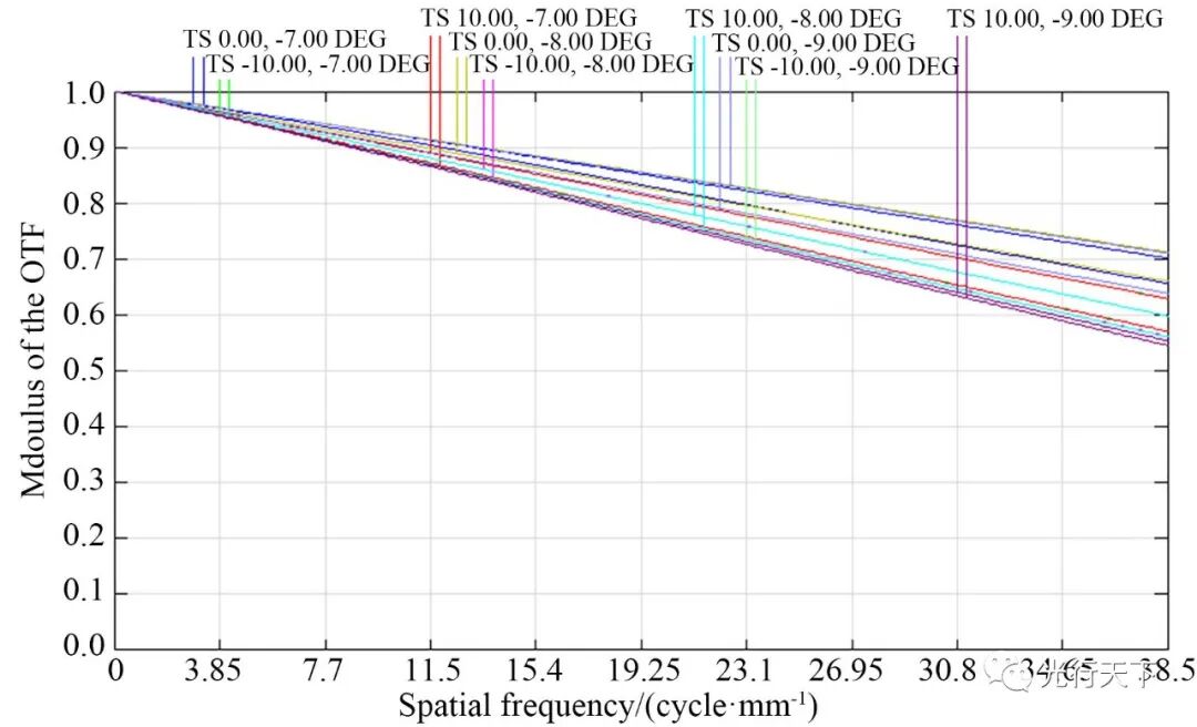 图15. 自由曲面偏振光学系统的MTF曲线