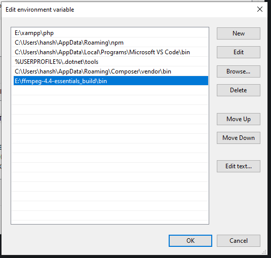 • 在此处下载 FFmpeg 发布版:https://www.gyan.dev/ffmpeg/builds/ffmpeg-release-essentials.zip