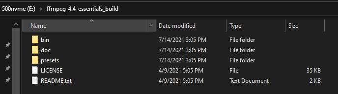 可以在此处(https://www.gyan.dev/ffmpeg/builds/)找到 4 个 Windows FFmpeg 构建变体: