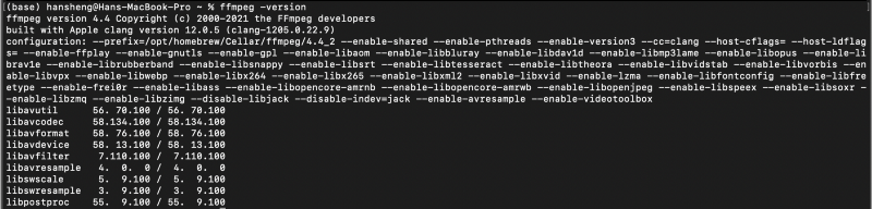 • 安装完成后,你可以在终端输入ffmpeg -version。如果打印出 FFmpeg 版本,则表示 FFmpeg 安装成功。