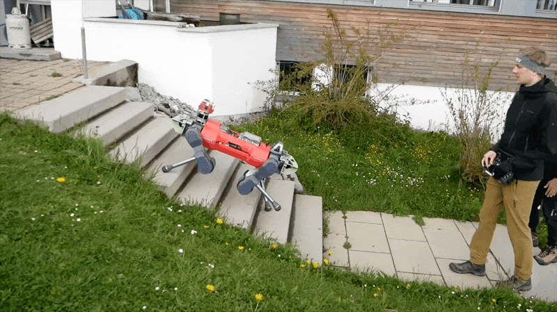 很稳没摔,机器狗ANYmal爬山比人还快4分钟,登上Science子刊 机器之心报道 编辑:蛋酱、小舟 这只狗,强得很。 湿滑地面的陡峭路段、高台阶、碎石和树根盘错的森林小径,在苏黎世湖南端 1098 米高的埃策尔山(Mount Etzel)的道路上,布满了许多障碍物。 来自苏黎世联邦理工学院机器人系统实验室的四足机器人 ANYmal 正在这样的环境中完成一次「徒步旅行」,总距离 2.2 千米: 在 31 分钟的时间内,ANYmal 毫不费力地攻克了 120 米的垂直距离,成功抵达终点了: 这比人类徒步旅行者的标准时间快了 4 分钟,而且 ANYmal 没有出现任何跌倒或失误。 和人类一样,机器人在与世界互动时通常使用两种不同的感官模式。外部感知来自外部传感系统,如激光雷达,照相机和眼睛。此外就是本体感知 ,这是一种内部感知,包括触觉和力感知。 一般来说,人类同时使用这两种感知模式来移动,外部感知帮助我们提前规划,本体感知在事情变得棘手时会发挥作用。例如,你在黑暗中使用本体感知,仍然可以保持移动,只是需要慢慢地、小心地移动,依靠平衡感和摸索周围的路。 对于足式机器人来说,外部感知使它们能够完成很酷的事情,鉴于好的外部感知和时间 (以及计算) 做一些非常棒的运动规划,机器人可以动态而快速地移动。然而,足式机器人在黑暗中要不适应得多,也许它们所需要的外部感知不能工作 (无论出于什么原因,传感器都无法工作) ,或者对机器人不友好的东西(比如反射表面或浓密的灌木丛或其他什么东西) 完全蒙蔽了外部感知。这是一个棘手的问题,因为现实世界充满了对机器人不利的事物。 近日,苏黎世联邦理工学院的机器人系统实验室的一项研究登上了《Science Robotics》。在这项研究中,他们展示了一种控制系统,可以让一个足式机器人评估它获得的外部感知信息的可靠程度。 论文链接:https://www.science.org/doi/10.1126/scirobotics.abk2822 当数据准确时,机器人会提前计划并快速移动。但是,当数据集看起来不完整、嘈杂或具有误导性时,控制器就会优雅地退化为本体感知运动。机器人会继续移动,也许会更加缓慢和小心,但会继续移动,直到再次开始依赖外部感知。这是人类和动物使用的一种技术,现在机器人也可以使用它,将速度、效率、安全性和可靠性结合起来,处理几乎任何具有挑战性的地形。 在去年秋天的 DARPA SubT 决赛中,这项技术被 ANYmal 足式机器人的团队注意到,并应用在了这款机器人上。尽管不确定 SubT 的终极对决是否比瑞士的某些登山运动更具挑战性,但视频中的表现令人印象深刻: 研究者训练这只四足动物爬上了附近海拔约 1098 米的埃策尔山。他们表示,ANYmal 机器狗能够在 31 分钟内完成 120 米的垂直距离徒步,比人类徒步者的标准速度快了整整 4 分钟。 随后,ANYmal 又用 48 分钟左右的时间走完了下山路线: ANYmal 的系统功能十分强大,能够在多种复杂地形中稳步前行,例如,在废墟上爬坡: 穿过茂密的植被: 在厚厚的积雪上行走: 在砖石遍布的山洞中行走: 上台阶: 爬起山来也是非常迅速: 和山上的小动物建立了真挚的友谊: 尽管外部感知数据显示这些地形中到处都是障碍物并且地面高度不一,但 ANYmal 机器人依靠该本体感知数据能够保持平稳行走。这种足式机器人借助本体感知进行移动的方法并不稀奇,但改进后的 ANYmal 的独特之处在于兼具速度优势和稳健性。 ANYmal 机器人通过匹配和协调外部感知和本体感知,来控制自己的足部位置,并进行了几个特定实验来验证两种感知的作用,包括: 踩在柔软的物体上: 透明物体: 上台阶: 包裹住传感器上台阶,并和上图进行对比: 在接近光滑的表面行走: 研究团队核心成员,论文第一作者 Takahiro Miki 介绍说:「人类操作员为机器人选择的可行路径无疑有助于机器人成功前行。因为一些障碍物是物理上就不可能越过的,例如比机器人更大的障碍物或悬崖。然而,在 DARPA SubT 挑战赛等场景中,高级探索和路径规划算法能够指导机器人的移动。这种规划算法了解运动控制器的功能,并使用几何提示来安全地引导机器人。」 未来,该研究团队将致力于在环境理解更复杂的山区环境中,不依赖人们的帮助,让 ANYmal 机器人实现自主远足。 参考链接: https://spectrum.ieee.org/legged-robots-anymal https://www.youtube.com/watch?time_continue=4&v=zXbb6KQ0xV8&feature=emb_logo 作者:极客石头 在搞事情的路上越走越远。 查看极客石头的所有文章。