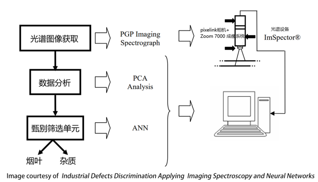 我们可以将光谱划分为多个小范围的窄带波段,对被测物体进行成像,获得其在每一个窄带波段的成像图片,结合算法软件,融合成像和光谱信息,从而实现对被测物体的鉴别和筛选以及进一步的分析。