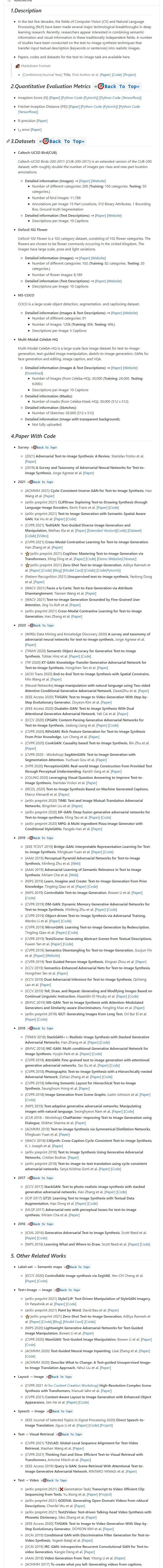 https://github.com/Yutong-Zhou-cv/Awesome-Text-to-Image在过去的几十年里,计算机视觉和自然语言处理领域在深度学习研究中取得了几项重大技术突破。最近,研究人员似乎对在这些传统上独立的领域中结合语义信息和视觉信息感兴趣。Text-to-Image将输入文本描述(关键词或句子)转换成真实图像的文本到图像合成技术进行了大量研究,本资源整理了文本转图片自动生成(Text-to-Image)历史最全模型、数据集、经典论文等资源。