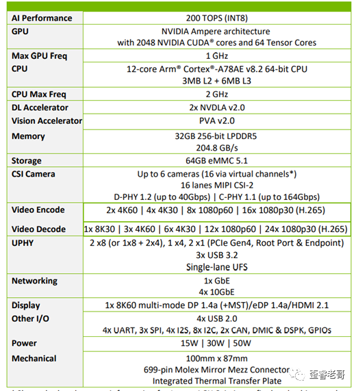 下图就是 JESTON  AGX Orin 的详细参数,拿走不谢!