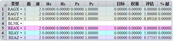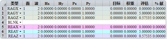 这里说的是zemax序列光学下的坐标系,在进行序列光学设计的时候,必须有非常清晰的坐标系观念,zemax不例外,使用的是右手坐标系,这个毋庸置疑。 右手系(right-hand system)是在空间中规定直角坐标系的方法之一。此坐标系中x轴,y轴和z轴的正方向是如下规定的:把右手放在原点的位置,使大拇指,食指和中指互成直角,把大拇指指向x轴的正方向,食指指向y轴的正方向时,中指所指的方向就是z轴的正方向。上图是随便百度的一个图,这个很好理解,下图是在ZEMAX三维图下面截图的一个坐标系图,验证了这一点。 那么标题说的两个坐标系是哪两个呢?可能大家在看说明书或者资料的时候,看到了这两个词,局部坐标系和全局坐标系,这里局部坐标系的转换,我们前面有一个帖子专门说明了,遥想当时那个帖子还是在候机厅写下的,缅怀下这次民航事故的同胞们,我们的生活会继续下去。 那么何为局部坐标,何为全局坐标系呢? 局部坐标系:在镜头编辑栏中每一个面都是一个局部坐标系,其原点在每个面的顶点上,光线在每个面的传递其实就是局部坐标系的传递。可以看出,镜头编辑栏有多少行,就有多少个局部坐标系。 常规的光学镜头编辑栏如上所示,每个面之间局部坐标系的变化就是厚度的变化,即坐标原点的变化,其余指向未发生任何变化。如需要变化则是引入坐标间断面进行修改。这里不做阐述,大家有兴趣可以阅览下面这个帖子。 全局坐标系:顾名思义,全局就是整个镜头编辑栏都在一个坐标系下面,那么这个坐标系的原点在哪呢?坐标系如何建立的呢?这里就涉及都一个局部坐标系的设置,这个设计就是如下截图: 当然还有其余设置方法,在我们讲义中有讲述,不在赘述。那么在固定的面上设置了全局坐标参考,那么此面的局部坐标系就是全局坐标参考系。 对于这些可能大家看了也是云里雾里,那么给一个简单示例说明如下,文件就是自带的库克三片式镜头,第一个面设置了全局坐标参考,此时我用REAX,REAY,REAZ,RGAX,RGAY,RGAZ进行坐标的提取,前者是局部坐标,后者是全局坐标。 根据上面的理论,此时全局坐标设置在第一个面,那么第一个面的局部坐标系就是全局坐标系,所以REAX,REAY,REAZ,RGAX,RGAY,RGAZ的评估值是一样的,那么接下来设置下第三个面为全局坐标参考系,评估值如下所示: 此时发现在一面上某根关系的全局坐标系的Z坐标发生了变化,局部坐标系没变。因为局部坐标系不随全局坐标系在哪而发生变化,而一旦全局坐标参考系变化了,某个光线与某个面的交点坐标就会发生变化,那么这个变化就看这两个坐标系的变化了。 现在的全局坐标系参考在第三个面上,那么现在的全局坐标系其实就是第三个面的局部坐标系,那么看以下第一个面和第三个面的全局坐标参考系差多少,前面也说了只是原点的Z坐标在变化,变化值为厚度值3.25896+6.00755=9.26651。由于在Z的负方向,故原有的值减去这个值0.57535-9.26651=-8.69116,这就是第二次的RAGZ的Z坐标值了。