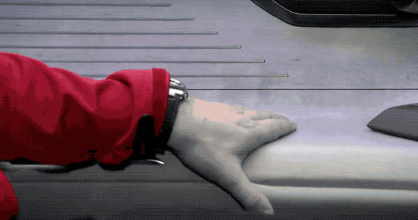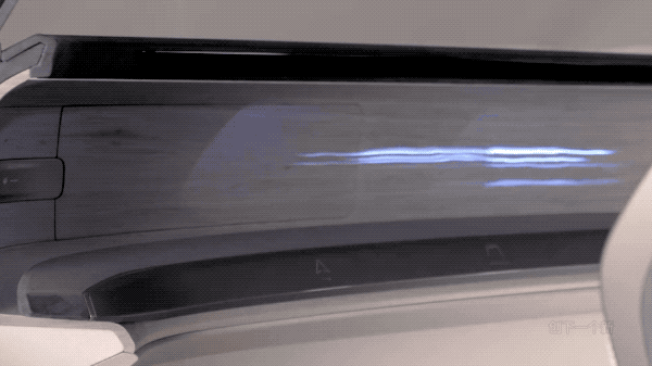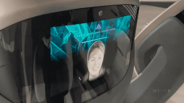 除此之外,还有一个巨大的透明屏幕,只要点击一下车门上的按钮就可从天窗上翻下来,同时也可通过手势控制。