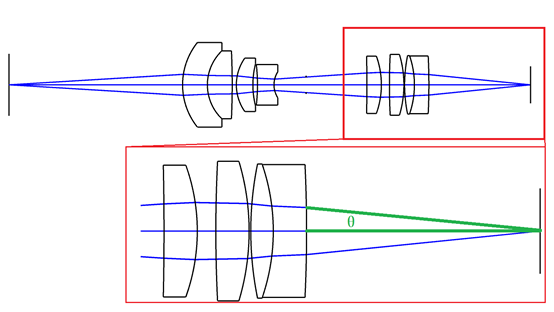 式中,θ指像空间边缘光线角度,n是像空间折射率。边缘光线在指定的共轭面上进行追迹。