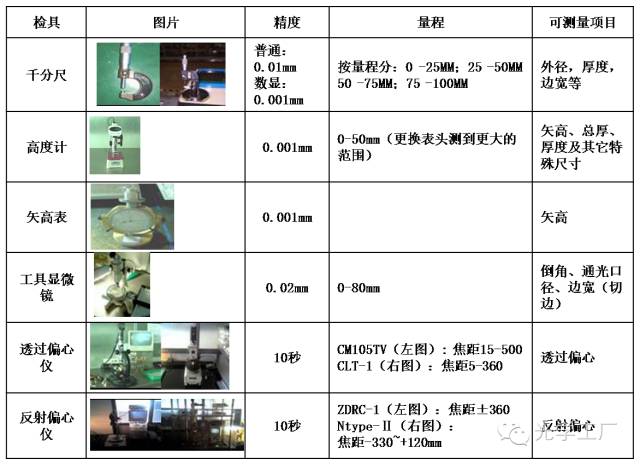检查项目有外径、矢高、倒角、偏心、外观(目视)