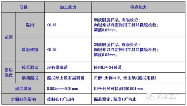 在镜片的磨砂面(芯取面)用黑色油墨按一定的技术要求均匀涂抹的工艺过程。