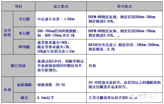检查项目有光学特性、膜层牢固度、信赖性、外观(目视)