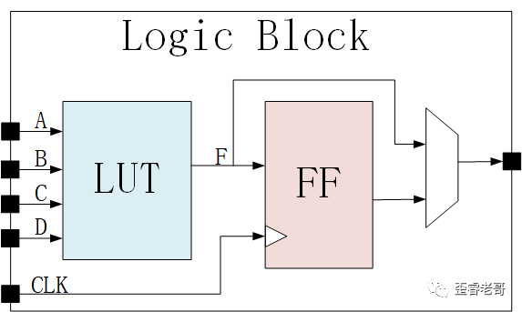 FPGA就实现了一个无数 Logic Block(Logic Block内部就是LUT+FF)的阵列,中间用布线资源连接起来。