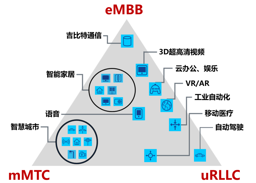 众所周知,5G分为三大应用场景,分别是eMBB(增强型移动宽带)、uRLLC(低时延高可靠通信)、mMTC(海量物联网通信)。
