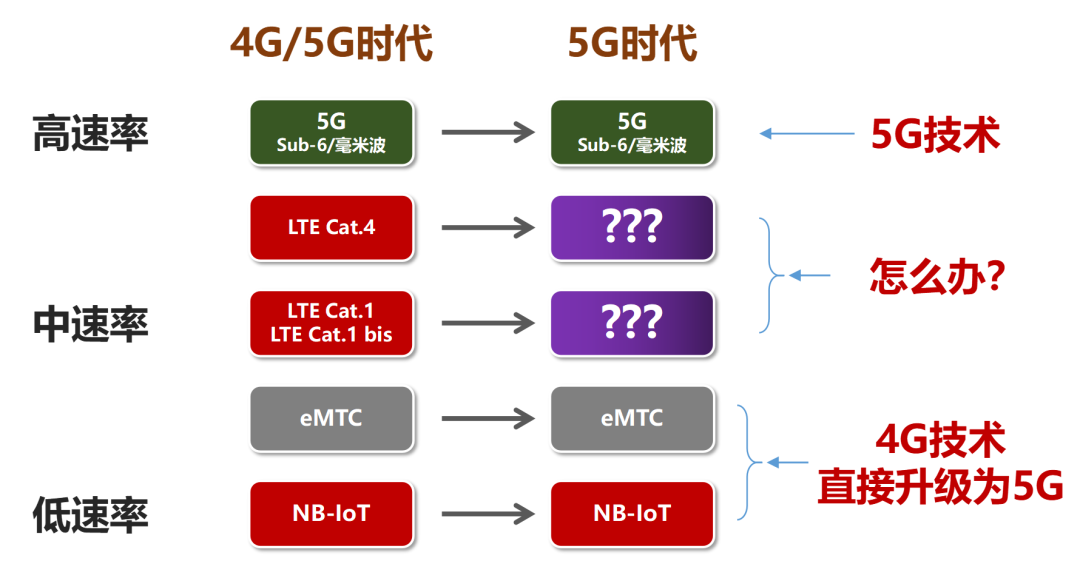 所以,5G必须考虑长远,建立一个轻量化的版本,用于覆盖住目前LTE Cat.1以及Cat.4的需求,也就是中速及中高速需求。
