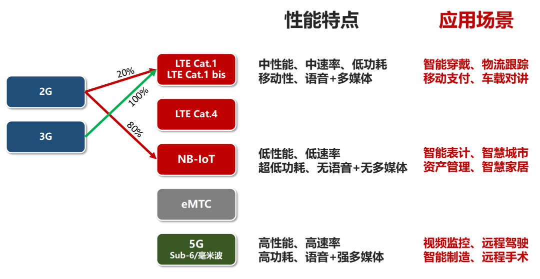 随着2G、3G的退网,绝大部分的2G、3G物联网业务将会迁移到LTE Cat.1、LTE Cat.4和NB-IoT。也就是4G、5G打天下。