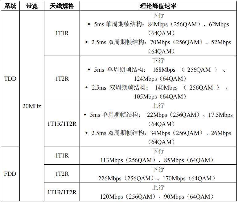 具体的速率值,根据天线数量和帧结构有所不同,可以参看下面的表格: