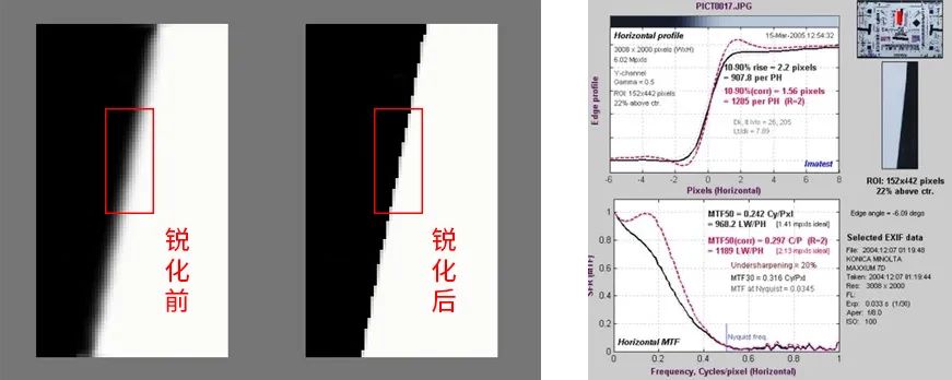 图五 锐化前后对比与SFR曲线