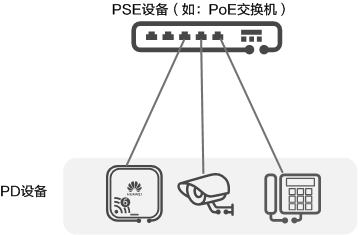 供电设备PSE(Power-sourcing Equipment):通过以太网给受电设备供电的PoE设备,提供检测、分析、智能功率管理等功能,例如:PoE交换机。