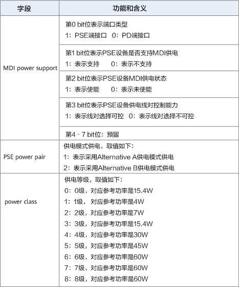 Power via MDI和Extended Power via MDI各字段含义如下图所示。