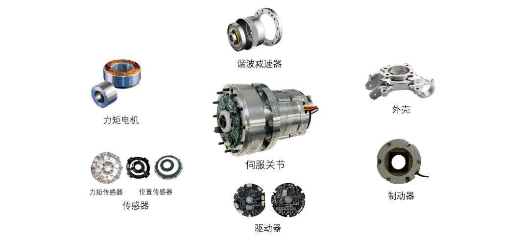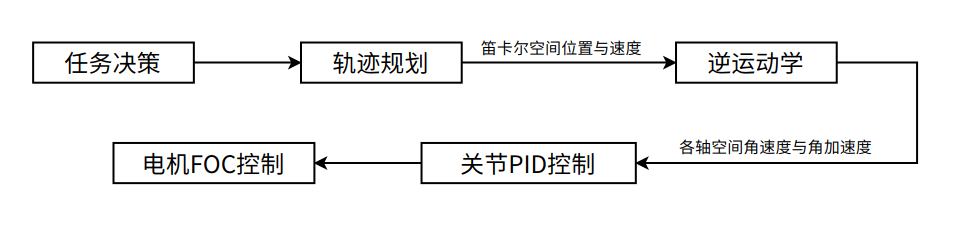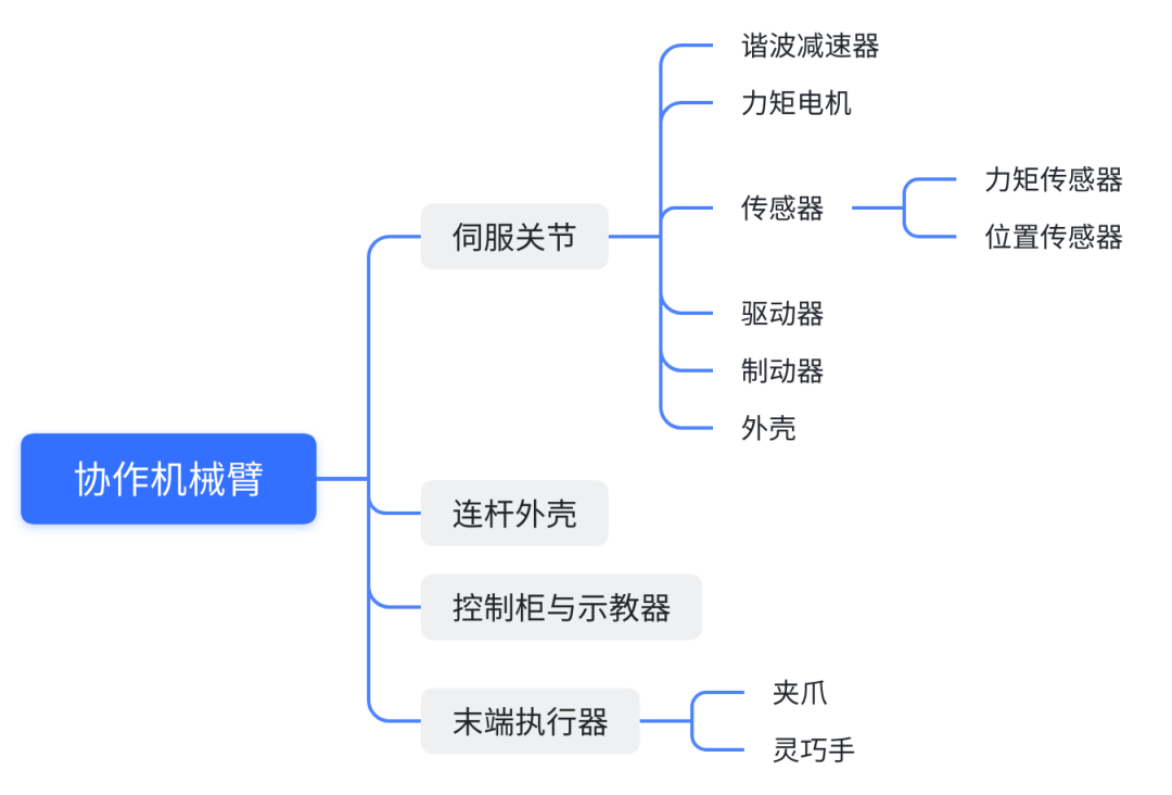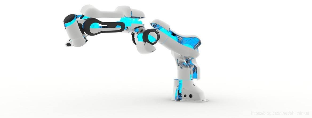 一、前言协作机械臂,顾名思义,是适合与人类通力协作去解决实际问题的一类机械臂,作为机械臂家族的一员,与传统的工业机械臂相对应。工业机械臂经过多年的发展,在汽车、3C电子等工业自动化领域已经得到了广泛的落地与应用,而协作机械臂作为近几年来的新兴产物,在智能性、安全性与易用性上相较于工业机械臂都有很大的提升,这给协作机械臂在柔性制造、康复医疗、商业服务与家庭应用等新兴领域均带来了极大的落地潜力。图1. 传统的工业机械臂与新兴的协作机械臂 图片来源:What is the Difference Between a Robot and a Cobot?这篇文章,首先将通过硬件设计与运动控制这两个章节,简要地介绍如何去设计并控制一台协作机械臂,再通过现阶段落地应用的实际DEMO来给大家一个对协作机械臂形态、功能与特性的直观认识。二、硬件设计协作机械臂的整体硬件设计主要由伺服关节、连杆外壳、控制柜与示教器和末端执行器这四个部分组成,详细可见下图2:图2. 协作机械臂的整体硬件设计地图(1)伺服关节伺服关节是协作机械臂最重要的组成单元,可以理解成整体机械臂的动力单元,一个完整的伺服关节一般由谐波减速器、力矩电机、传感器、驱动器、制动器与外壳这六部分组成,具体可参见下图3。图3. 协作机械臂伺服关节的主要组成元件力矩电机是通过FOC矢量控制来输出所需求的转速和扭矩,再通过谐波减速器进行转速和扭矩关系的调制,一般在协作机器人中,是经谐波减速器把电机的高转速+低扭矩工况转化为实际使用需要的低转速+大扭矩的工况;FOC矢量控制的底层运算是经过集成嵌入式芯片的驱动器产生,驱动器作为伺服关节底层控制的“大脑”,还具备实时底层计算、输出三相驱动电流,AD/DA输入输出转化与通信协议解析等重要功能;同时为了确保伺服关节输出位置与力的精度,在具体的控制上我们一般要求做闭环,这就需要有位置传感器和力矩传感器将相应关节位置与关节力实时测量反馈至驱动器;另外一般我们会要求机械臂在断电时能够保持静止稳定的姿态,因此在伺服关节中一般还会集成相应的驱动器来克服相应的重力矩;最后整体的伺服关节由通过精细设计的CNC外壳,将上述所有提到的主要组成元件串联固定起来,以形成上图3中所示高集成度的伺服关节。(2)连杆外壳协作机械臂在上文提到的伺服关节的基础上,需要相应的连杆外壳将每个动力单元串联起来,以形成整体的动力传递与机体构型,这里提到的构型具体是指在空间中自由度的数目,一般协作机械臂都以6自由度或7自由度为主,构型上可以称作六轴机械臂或七轴机械臂。七轴机械臂因为存在一个多余空间本身6自由度的冗余自由度,因此在整体运动的灵活性与可达性上更有优势。图4. 协作机械臂(Emika Franka Panda) 的连杆外壳爆炸图(图片来源:Emika Franka)上图4是一款经典协作机械臂的连杆外壳爆炸图,一般传递动力的元件(图4白色元件)是由铝合金制成,而作为检修开盖口或者装饰性的元件(图4灰色元件)由塑料制成,作为传递动力的元件在设计过程中需要做精密而详细的FEM分析,以确保在良好轻量化的基础上仍能保证较好的本体刚度,来提升整体机械臂运动的动态性能和末端的定位精度。(3)控制柜与示教器协作机械臂除机身本体外,一般在实际使用过程中我们还要搭配控制柜与示教器来进行操作使用,具体如下图5所示。图5. 协作机械臂(UR 5e) 与其控制柜和示教器(图片来源:Universal-Robot)控制柜类似于整体机器人上层控制的“大脑”,一般搭载一台工控机(NUC)去进行对算力要求较高的上层运算,相对应的就是上文伺服关节中提到的驱动器,因为尺寸和功率的限制,一般是处理较为底层的基本运算。另外,控制柜中还集成了相应的电源模块,用来将我们日常生活中提供的220V交流电转化为伺服关节所需的48V或24V直流电,同时还具备相应的电源安全模块来确保整体机械臂电气系统的EMC和抗ESD能力。而示教器则类似于一款集成特定操作控制系统的平板,直接和用户进行交互,用户在没有PC的情况下也可以通过示教器直接对机械臂进行操作控制,一般示教器上都是提供高度封装的图形化编程界面以及设计良好的HMI,以提升用户使用机械臂的便利性。另一方面,在示教器上一般均会要求集成红色的急停按钮,在发生紧急情况的时刻进行最高优先级的急停制动,提升使用过程中的安全性。(4)末端执行器在实际使用过程中,我们会在机械臂的末端集成相应的末端执行器,以提升机械臂的实际操作与抓取能力,一般末端执行器会通过如下三种形式出现:气动吸盘、夹爪与灵巧手,如下图6所示。图6. 协作机械臂与各类末端执行器集成图(图片来源:Universal-Robot,KUKA iiwa,Schunk Lightweight Arm)气动吸盘在实际工业领域的应用中最为常见,可以用来对各类平面度较高的物体进行简单可靠的Pick and Place,但不具备对微小不规则物体的抓取能力,同时需要额外集成相应的气泵,整体系统集成度低,一般仅用于工业场合;而夹爪则是极大地弥补了对微小不规则物体的抓取能力,同时不需要额外的外部动力源,和机械臂本身共享直流电源即可,整体成本可控,简单稳定可靠,因此是对集成度要求较高的商业场合中使用最高的末端执行器方案;而灵巧手则是在夹爪的基础上,提升了对物体“掌中操作”(In-Hand Manipulation)的能力,即不仅可以对物体进行抓取,