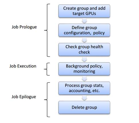 客户端需要在job的prologue阶段将用户定义的job id和使用的GPU group告知DCGM,并在job的epilogue阶段再次通知job id。