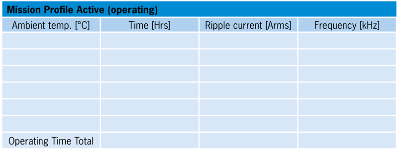 每家供应商都对自有产品使用单独的计算,其中包括温度曲线和纹波电流负载。因此,供应商可以使用客户提供的任务配置文件进行详细的使用寿命计算。